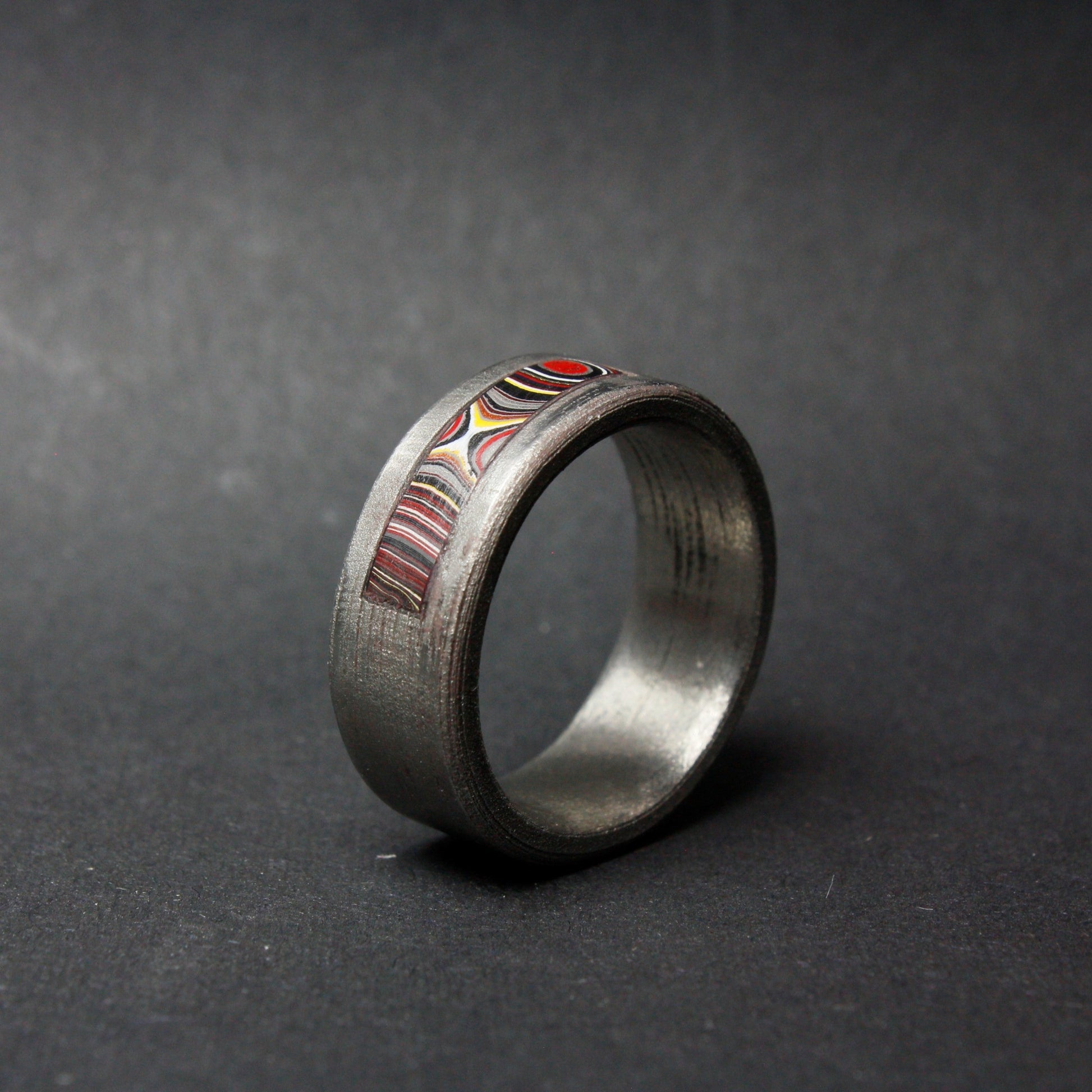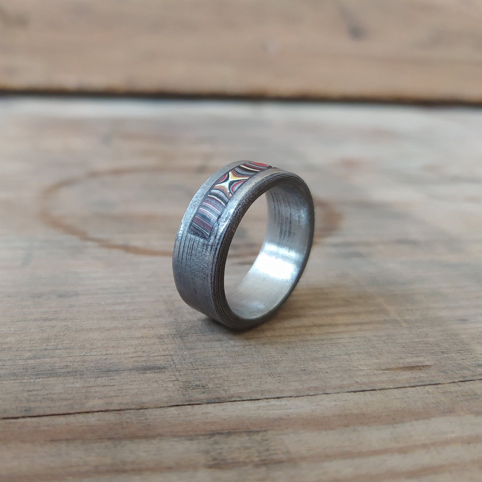 3D Printed Steel Ring Inlaid with Corvette Fordite