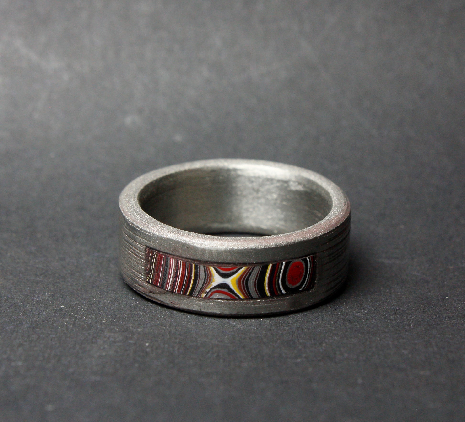 This listing is for a 3d printed steel ring inlaid with corvette fordite.