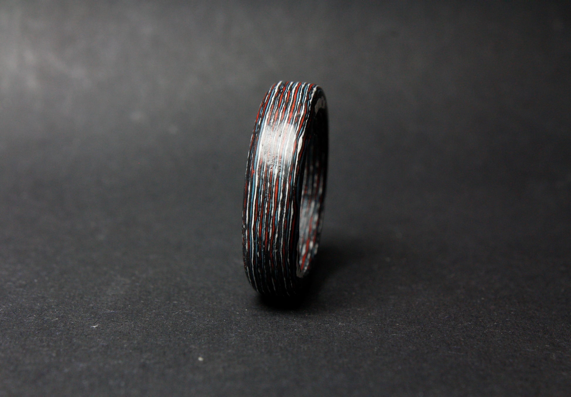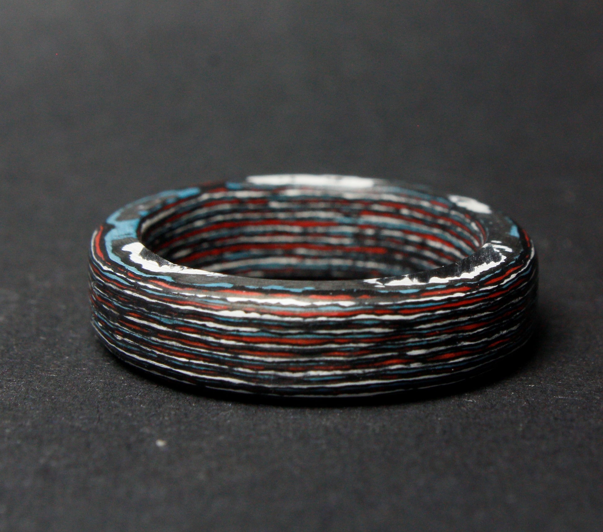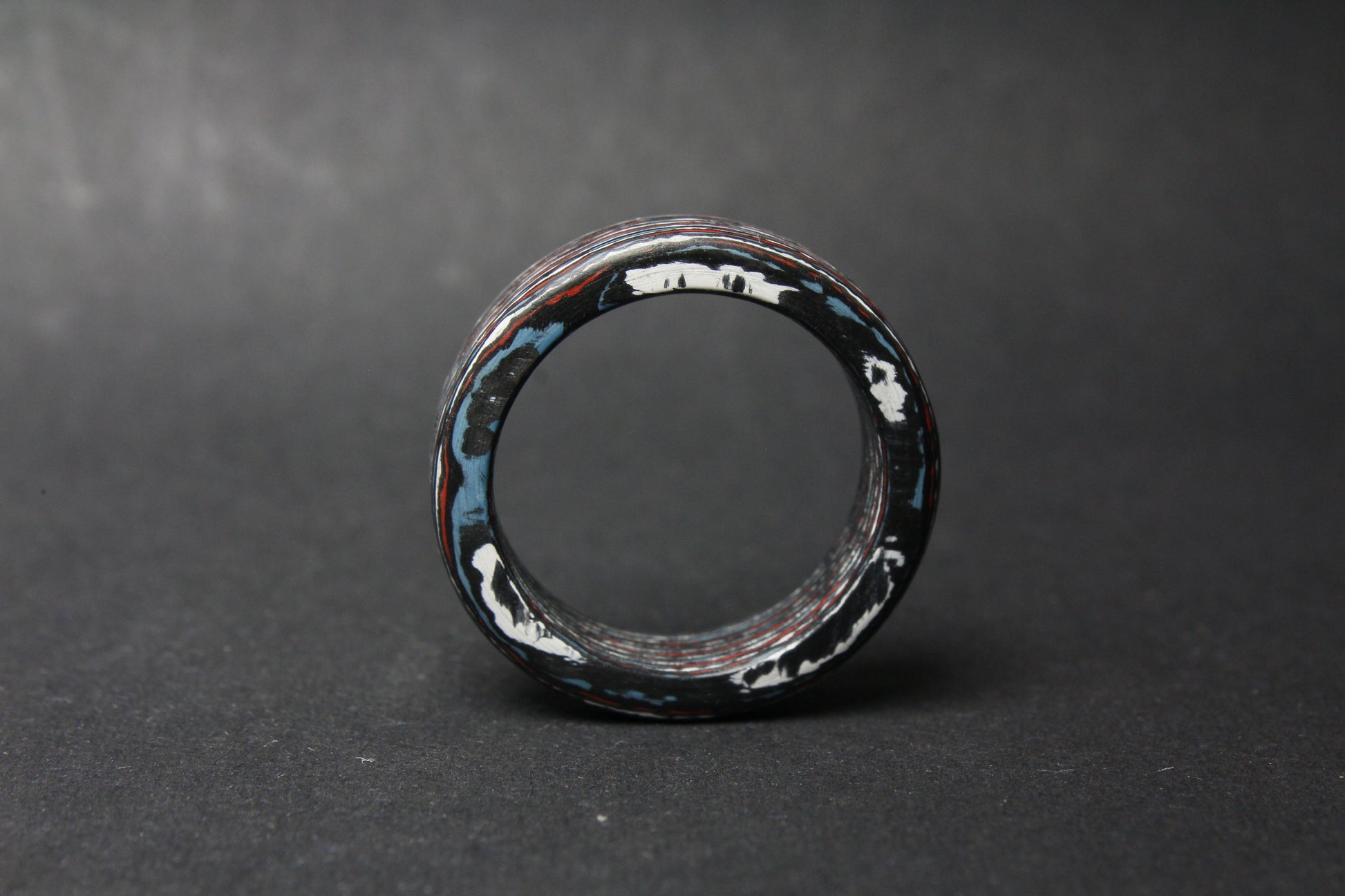 This listing is for a handmade ring made with carbon fiber infused with white, blue, and red colors.