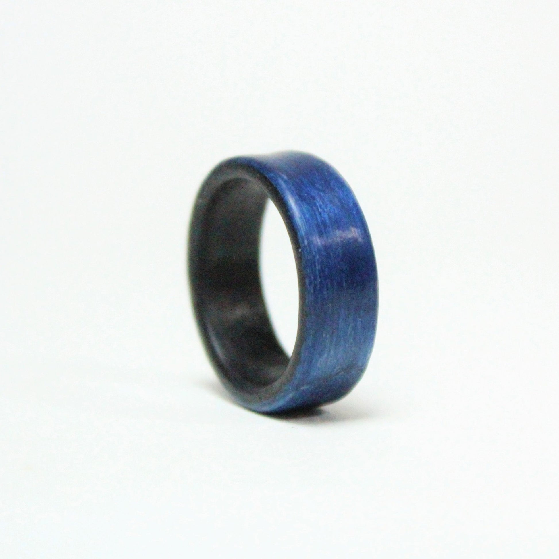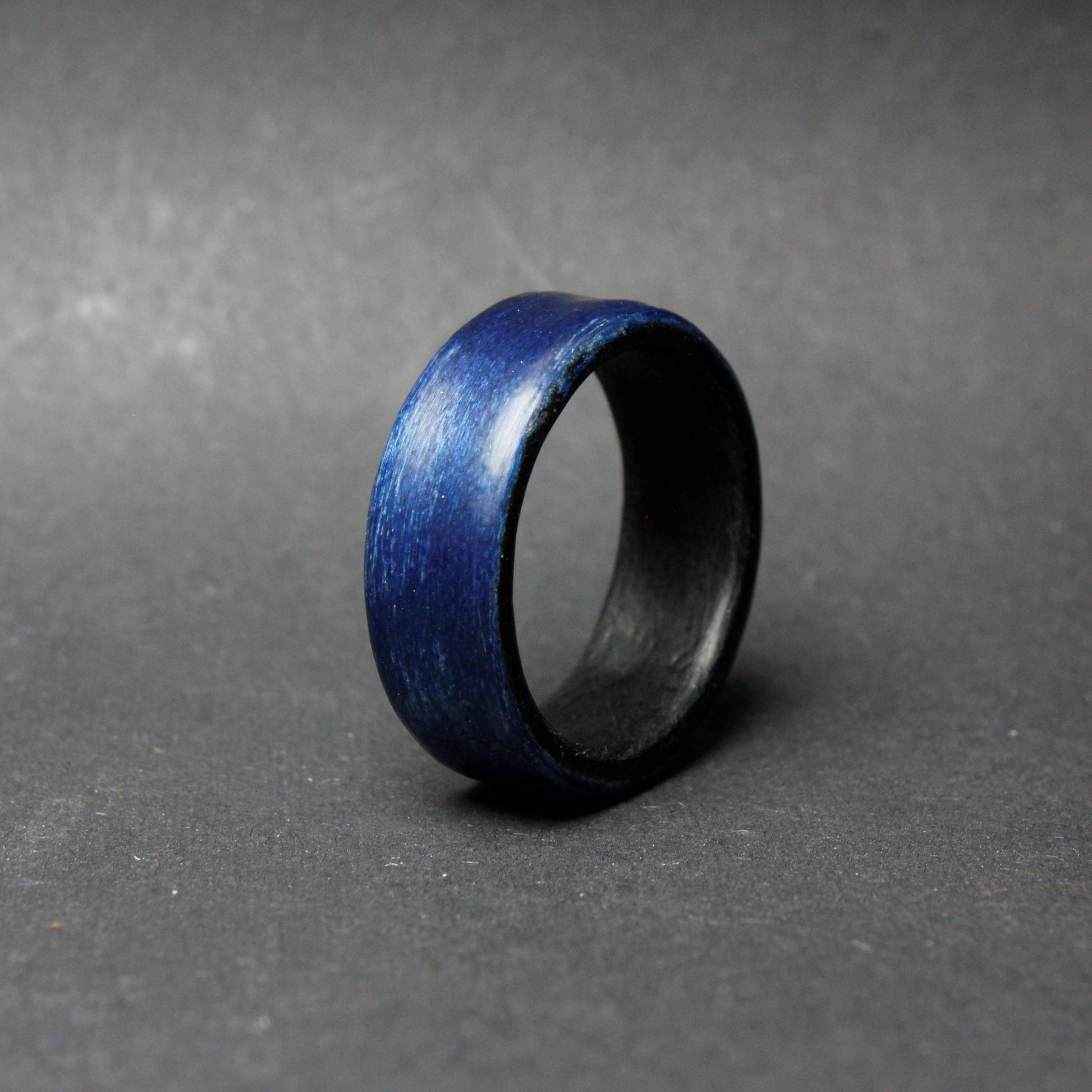 This listing is for a custom handmade ring made with black and blue poplar wood.