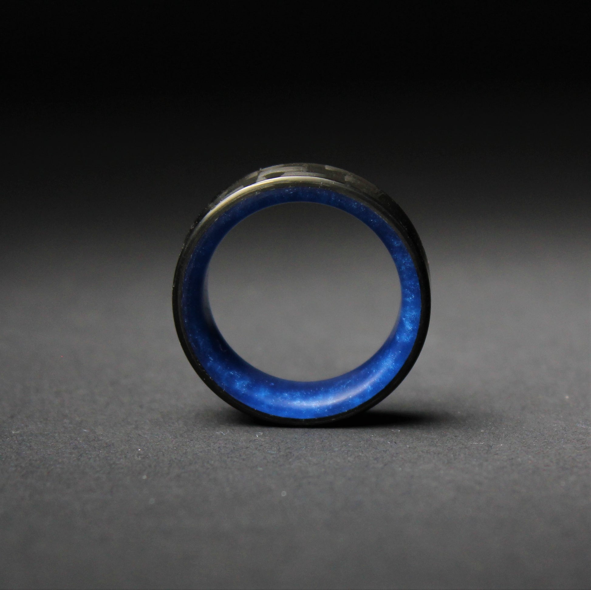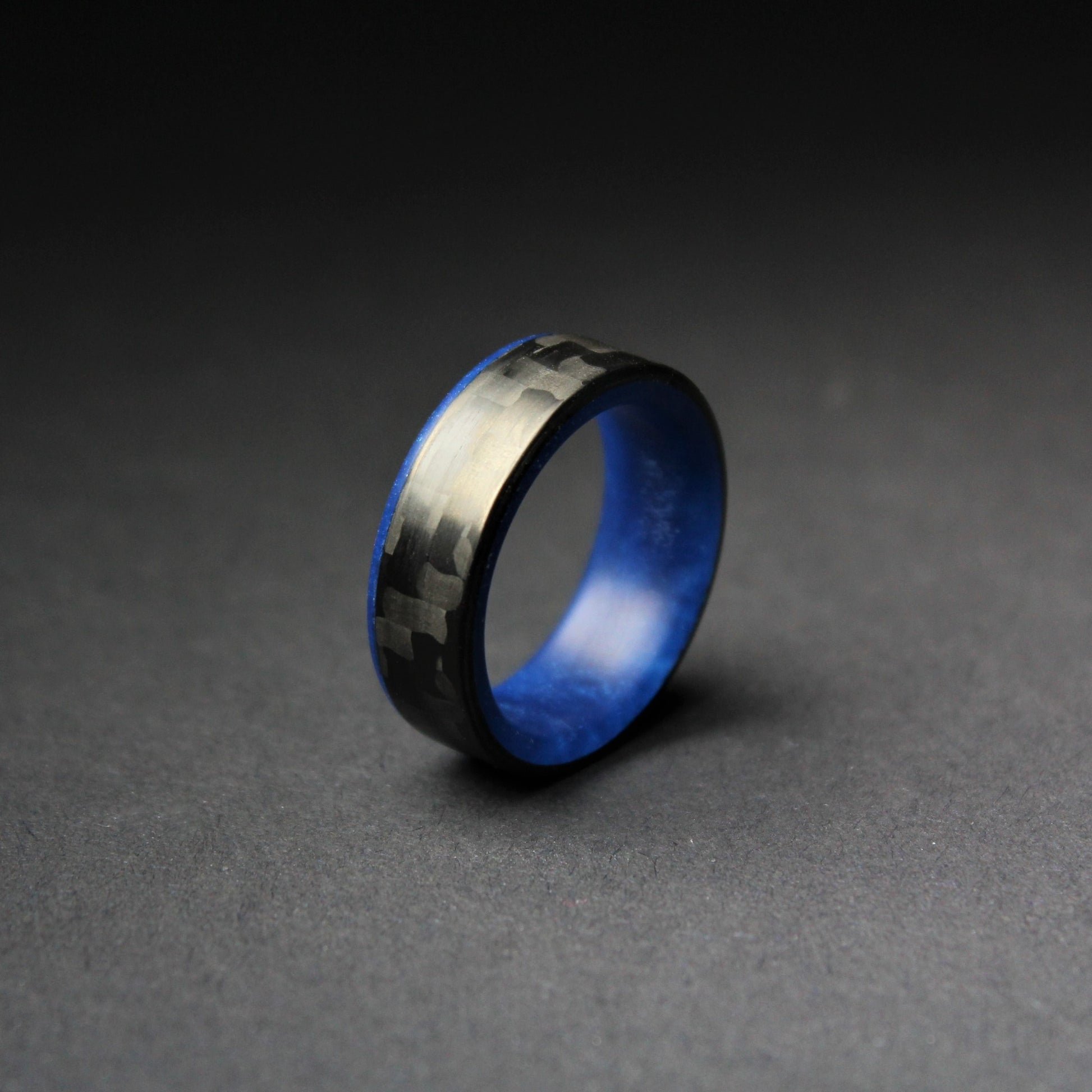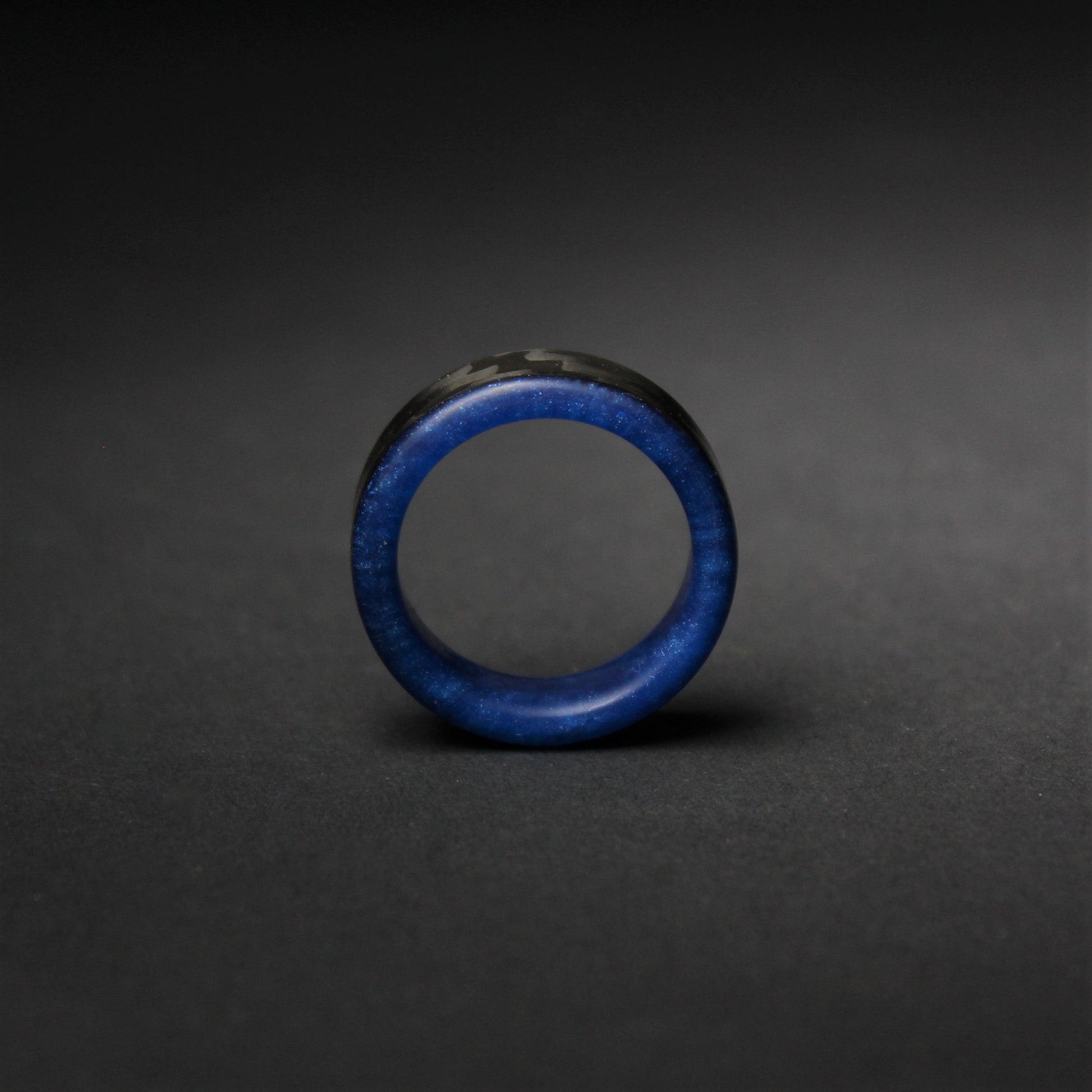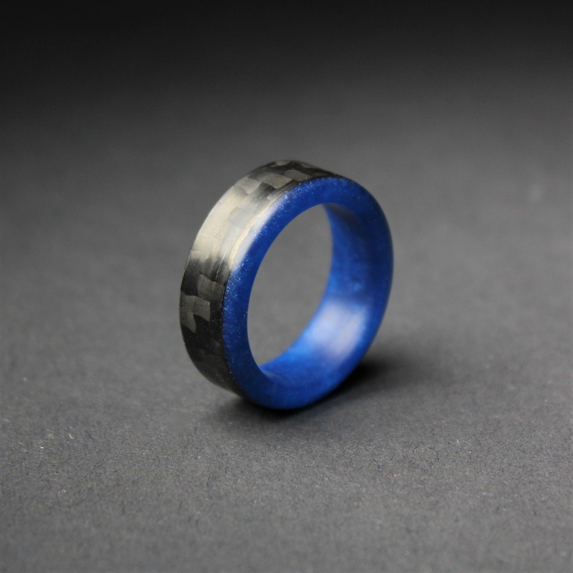 This listing is for a handmade ring made with blue epoxy resin and carbon fiber.