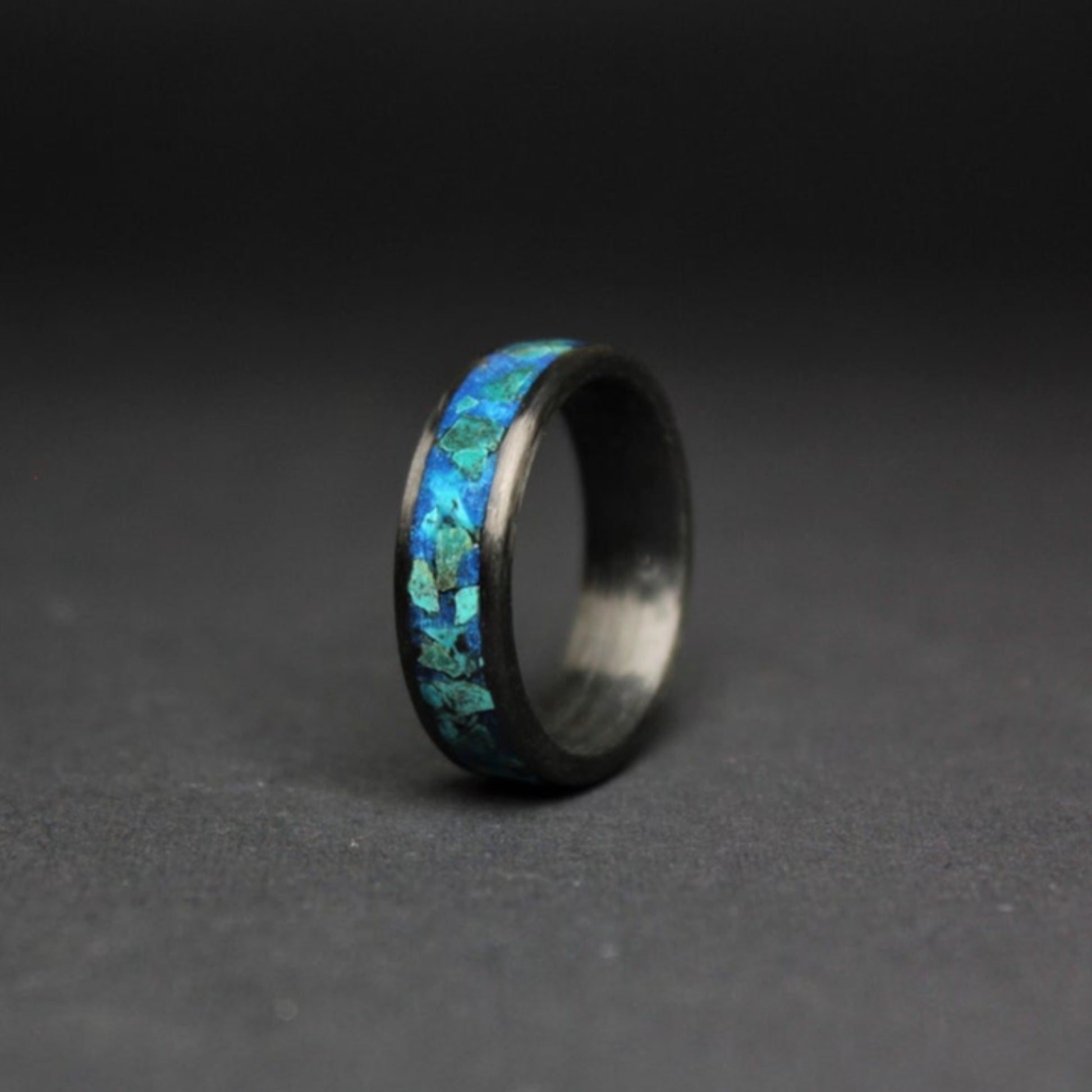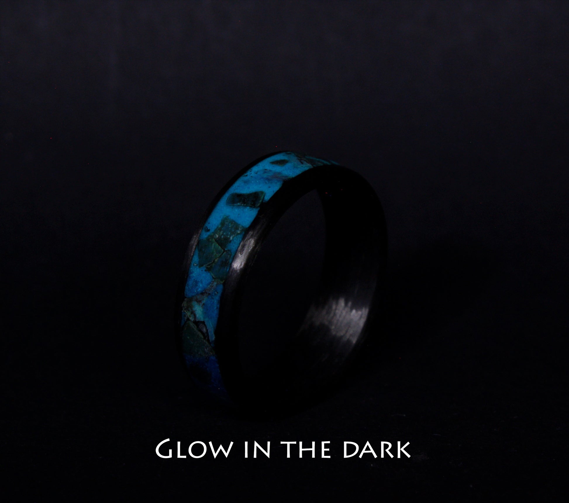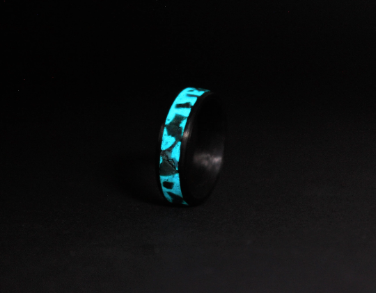 Carbon Ring with Turquoise and Glow Powder Inlay