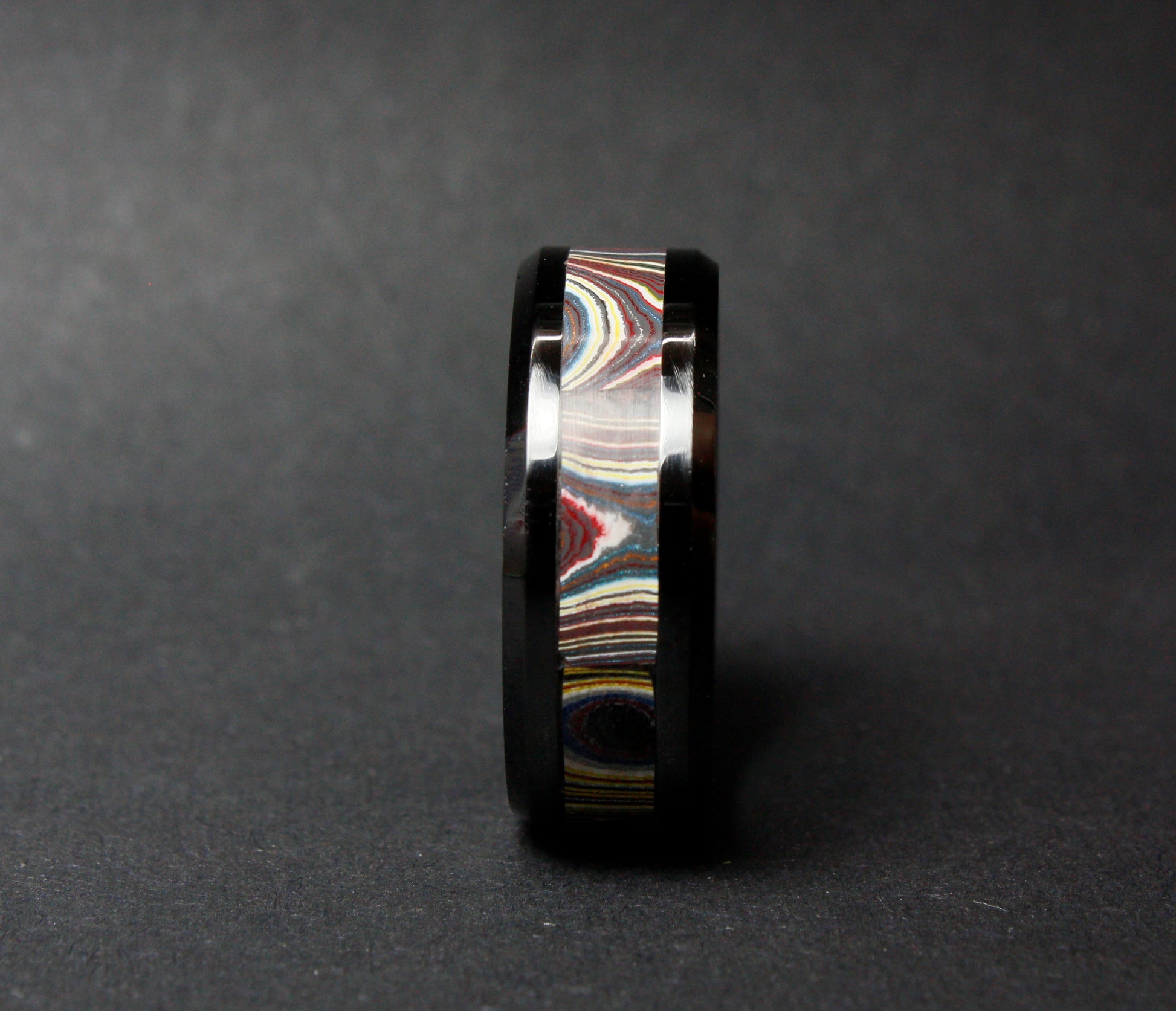 This listing is for a ring made with a black ceramic core and inlaid with corvette fordite.