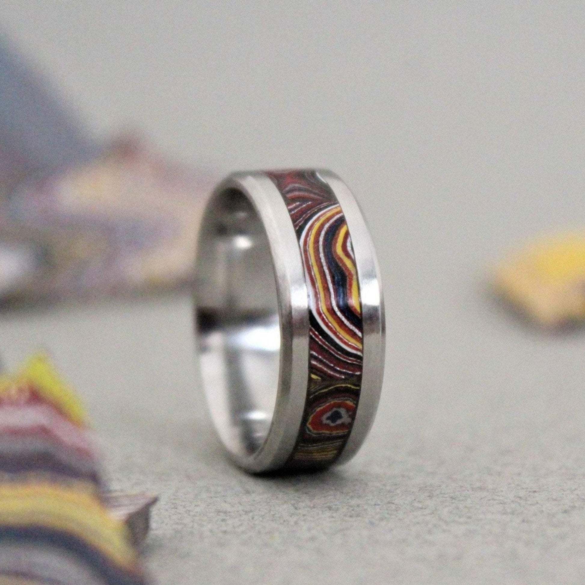 This listing is for a handmade ring made with titanium core and inlaid with Corvette Fordite.