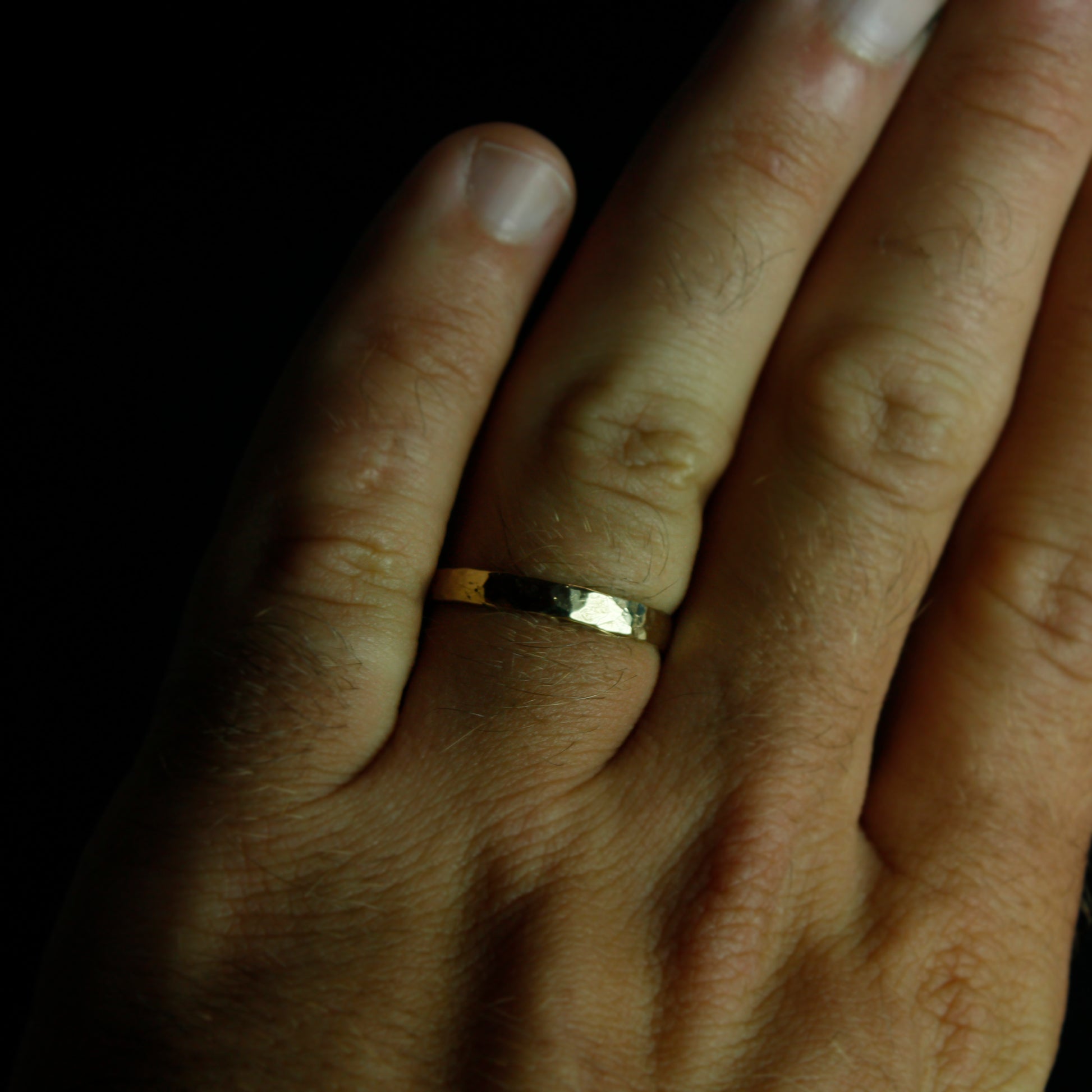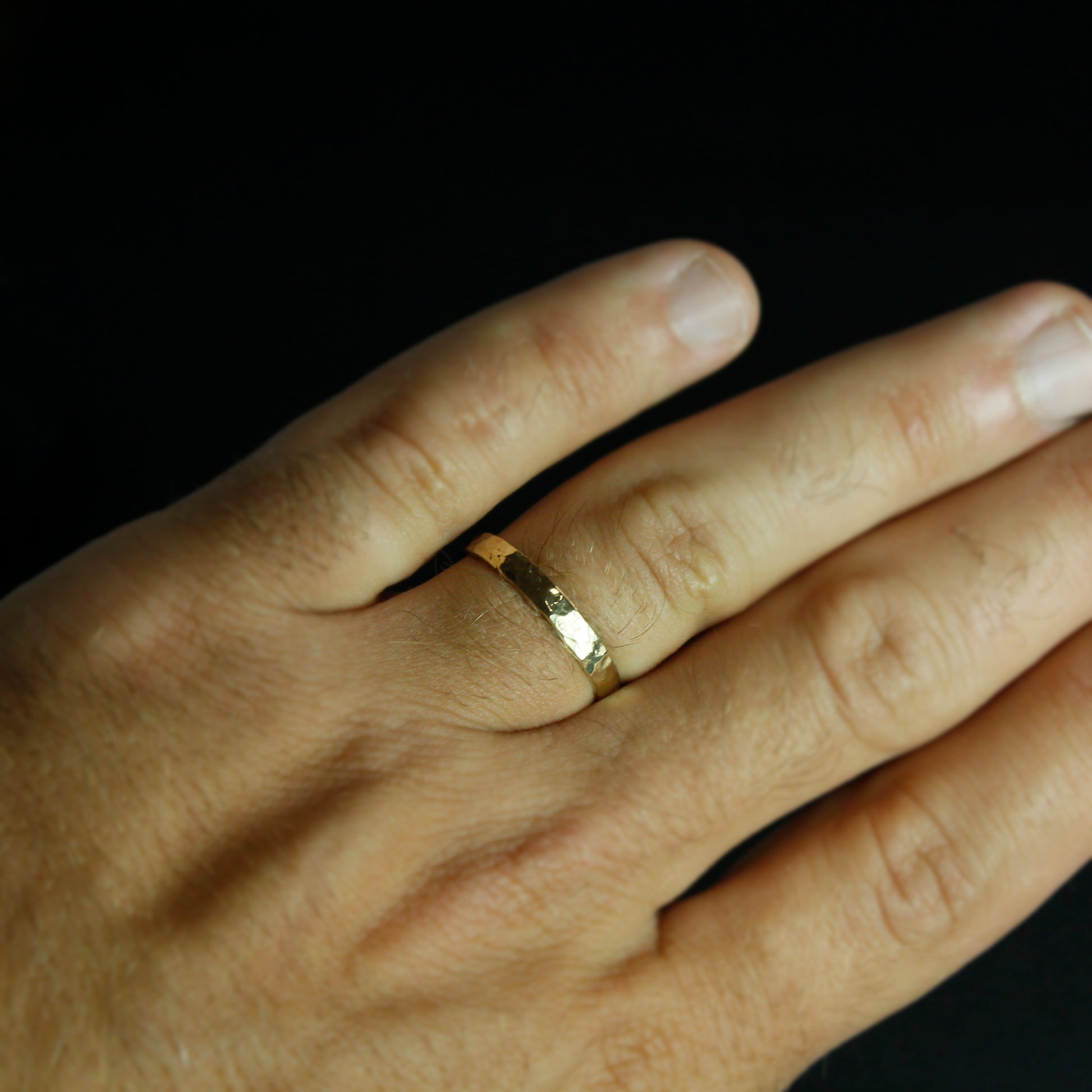 This listing is for a handmade yellow gold wedding ring with a hammered finish.