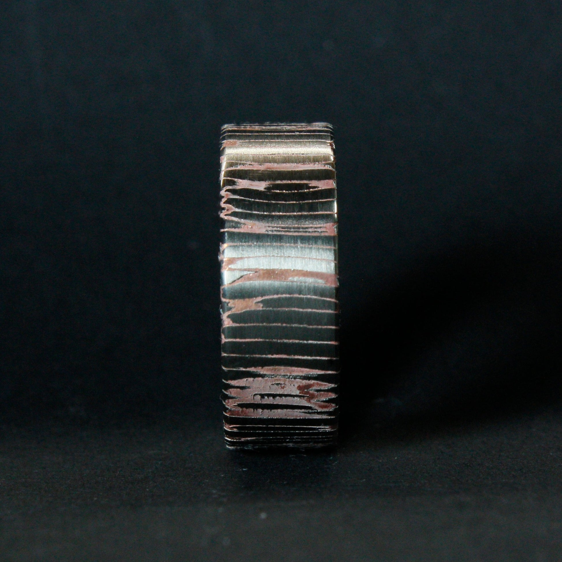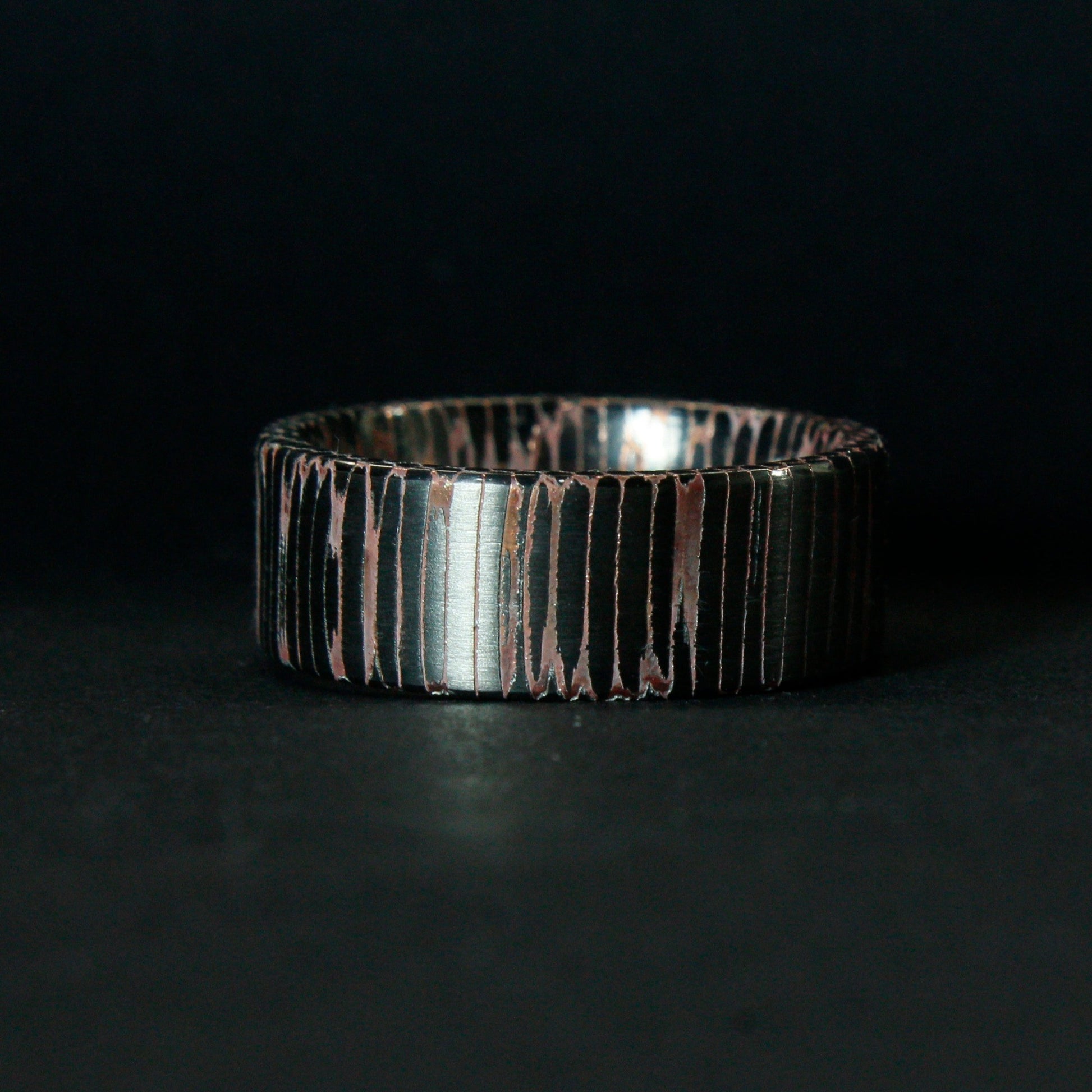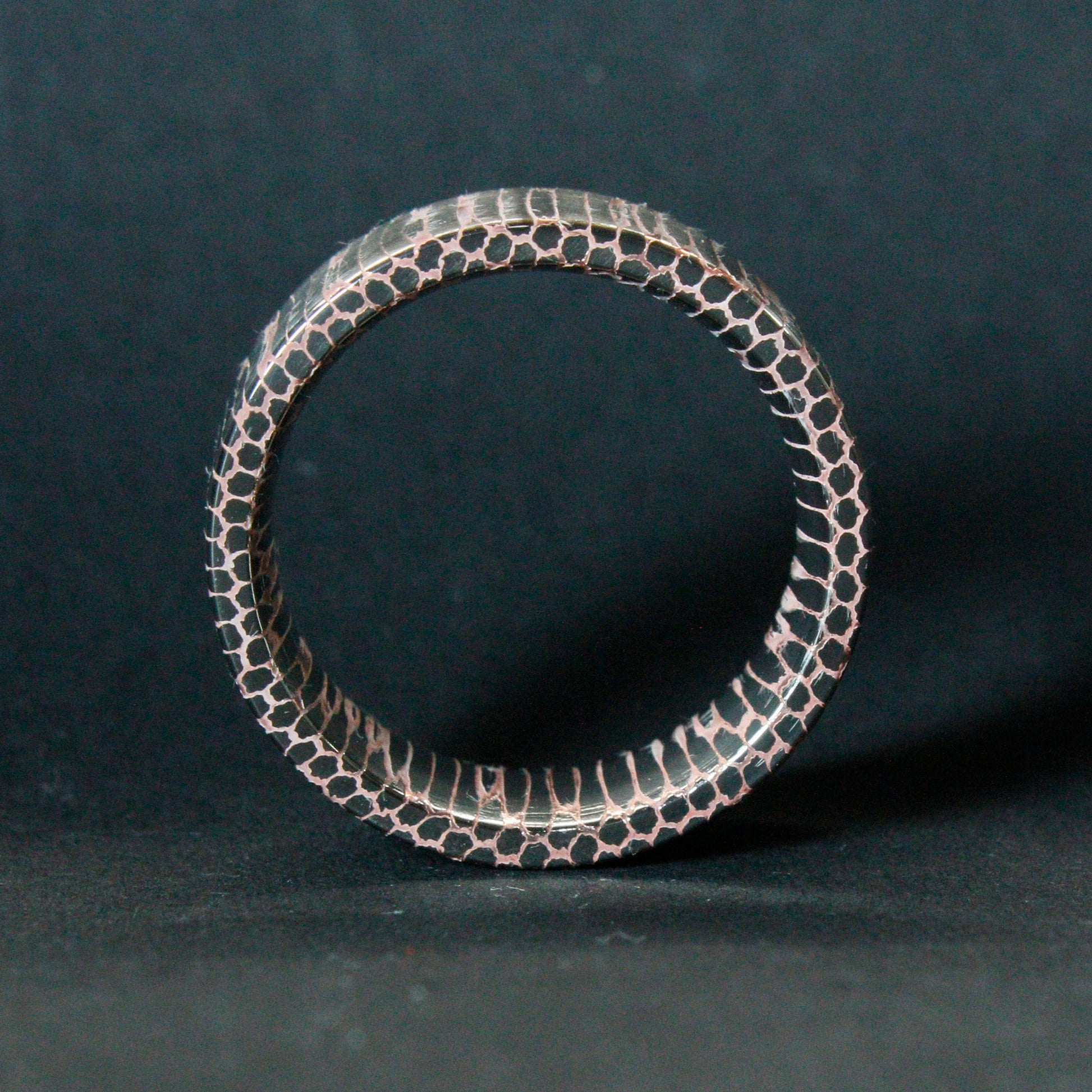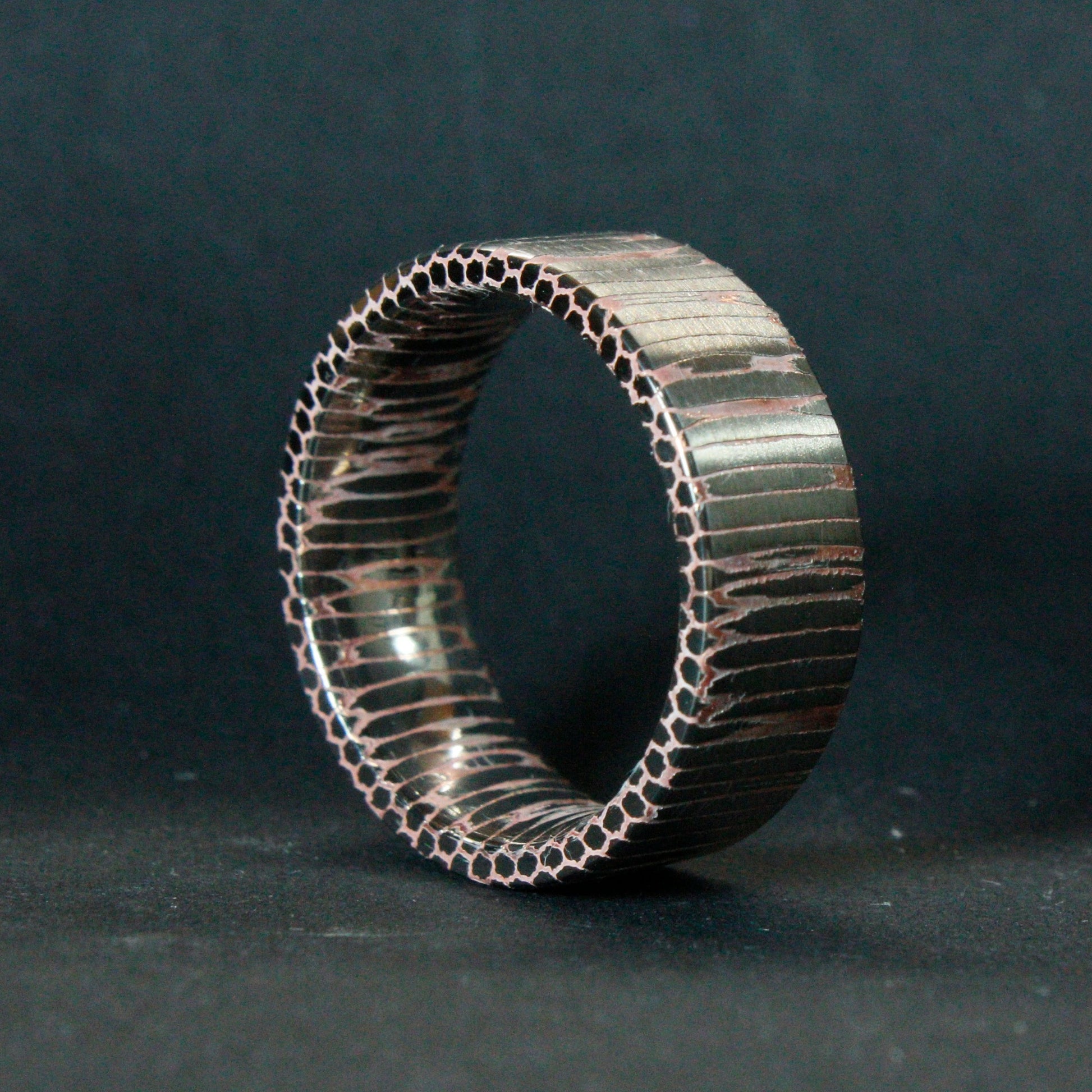 A superconductor is a general name for metals and alloys that when cooled, exhibit close to zero electrical resistance, and hence are often used in special scientific experiments. This ring is made of copper and titanium niobium alloy, creating an interesting pattern (for deeply etched and unetched superconductor rings check my store).