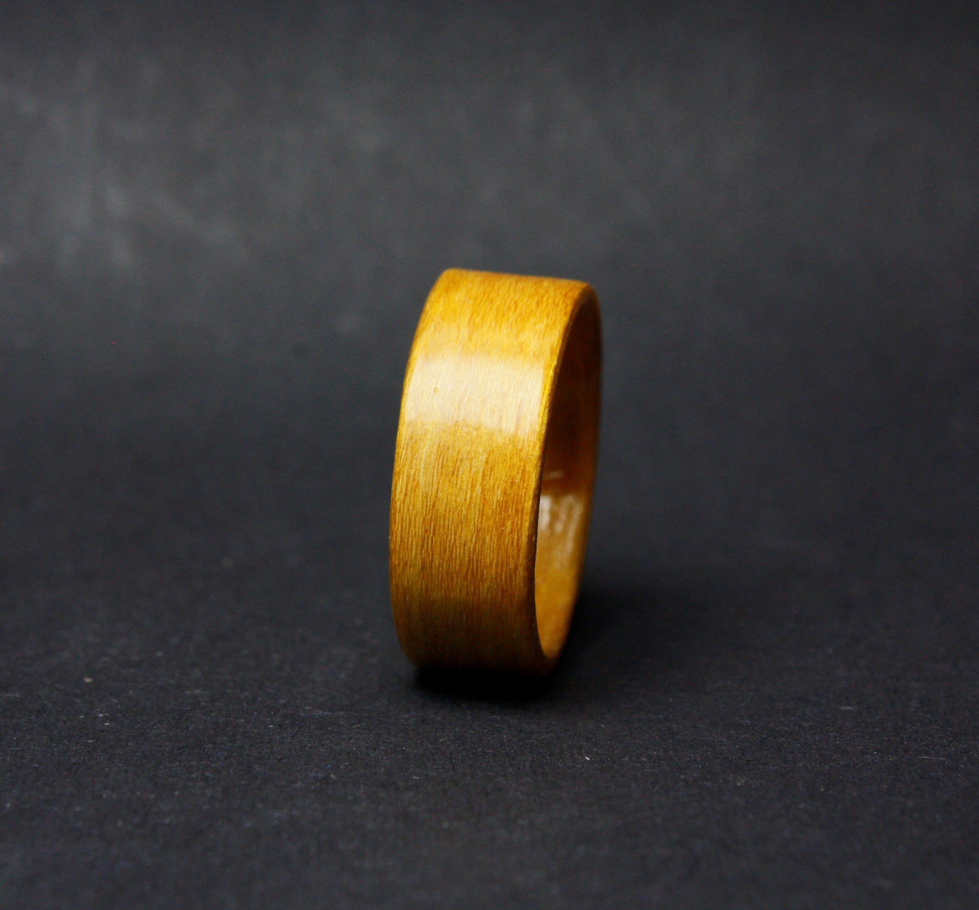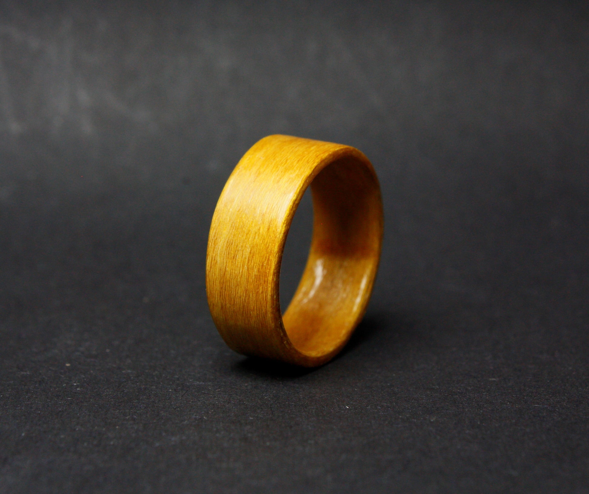 Your ring will be crafted in the bentwood method. In this process, the wood (veneer) is first steamed and bent so it can form a ring. After the veneer is dry it is carefully rolled with the grain direction creating a ring built out of several thin layers. This process gives the rings a very high strength and shows the natural grain of the wood. The ring is finally sanded to size and width, coated with several waterproof layers and polished by hand to the desired finish.