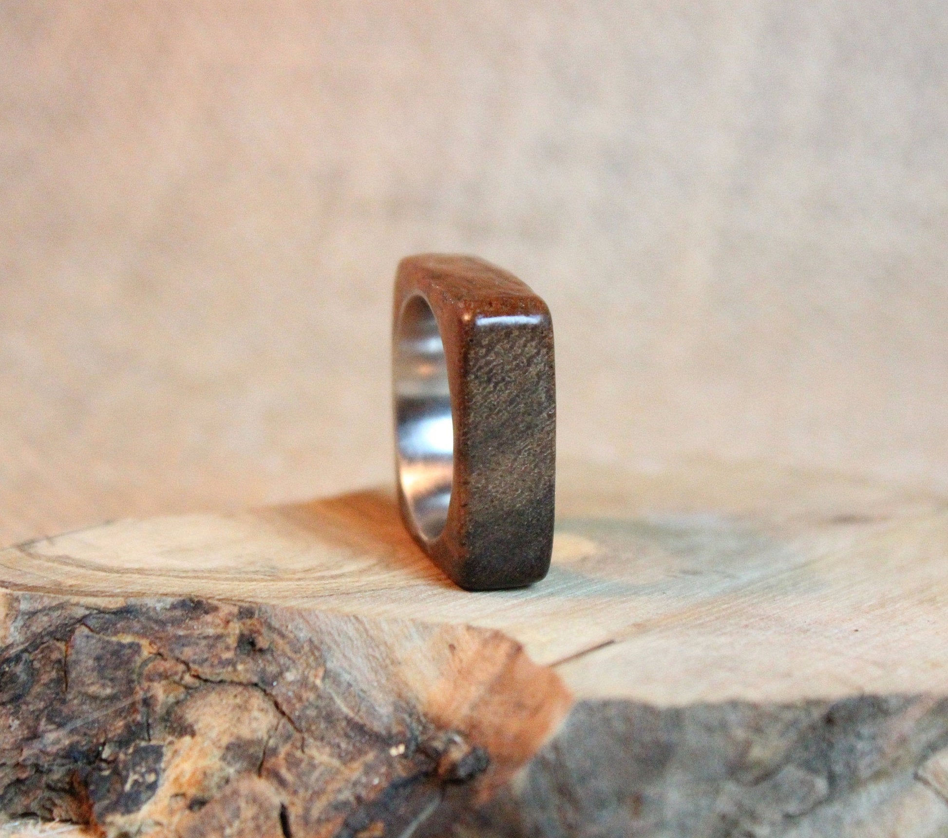 This listing is for a handmade ring made with Mahogany wood from Sri Lanka and stainless steel core.