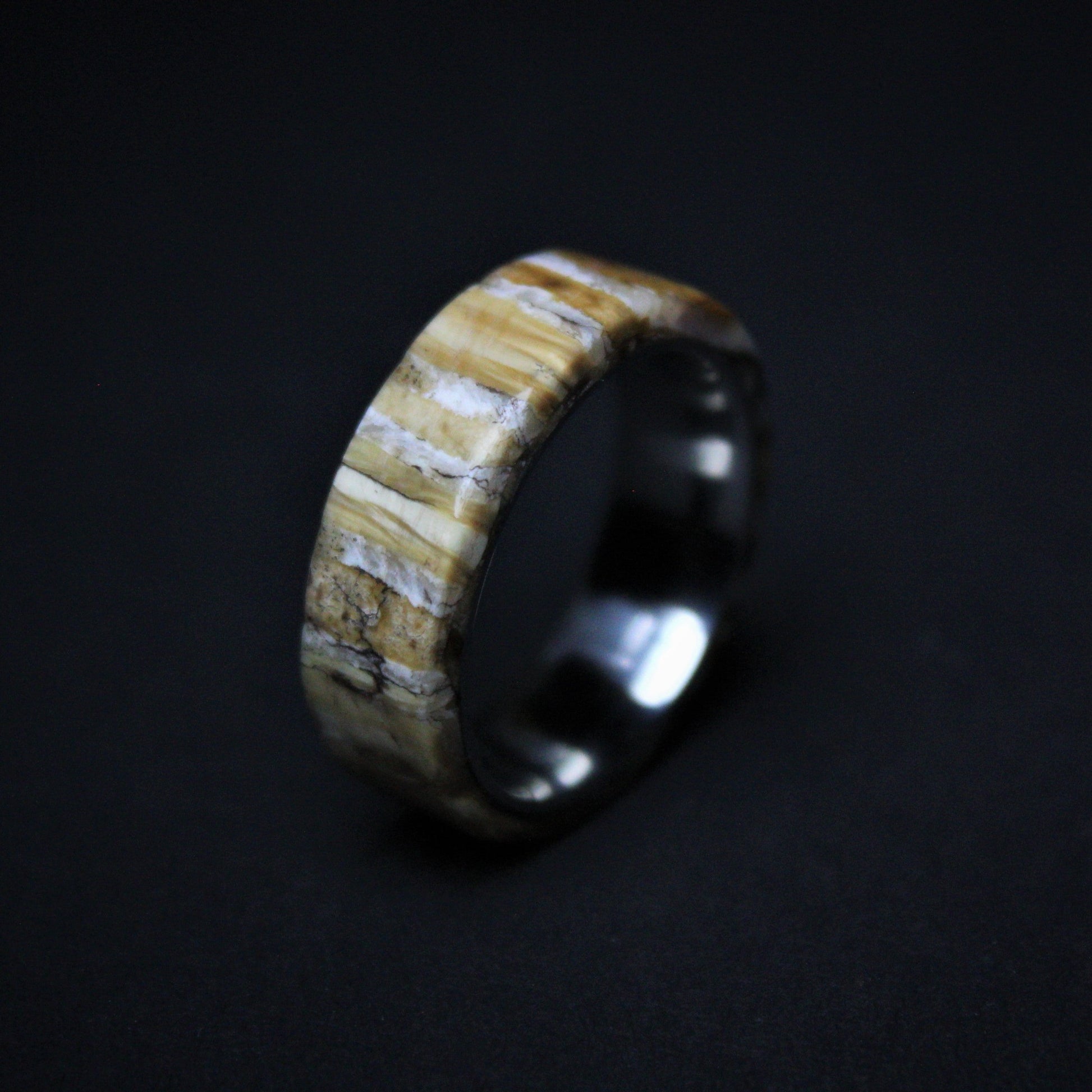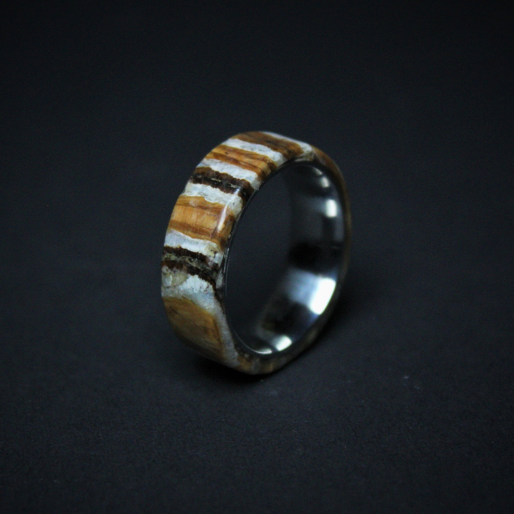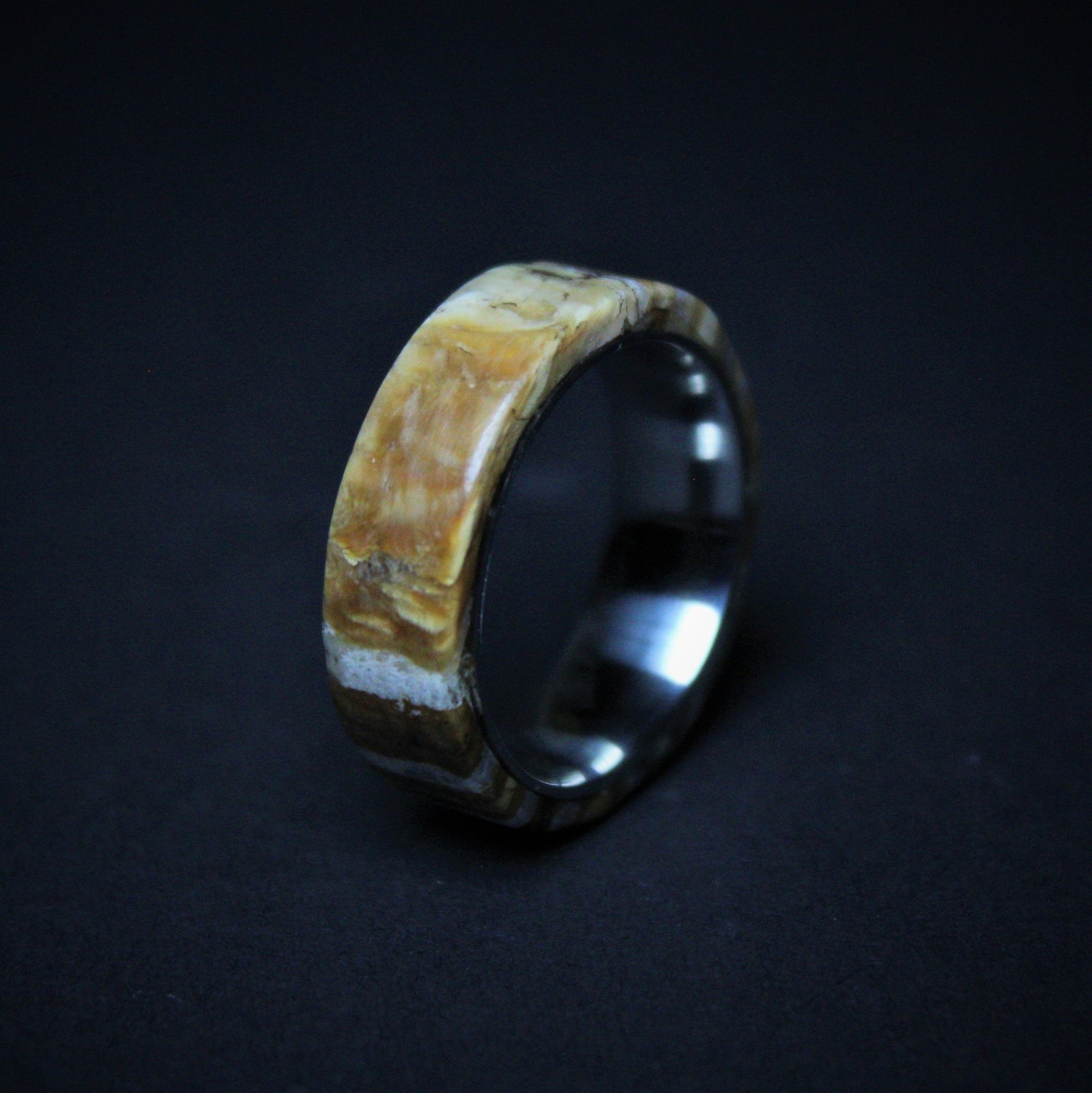 This listing is for a handmade ring made with real mammoth teeth and a stainless steel core.