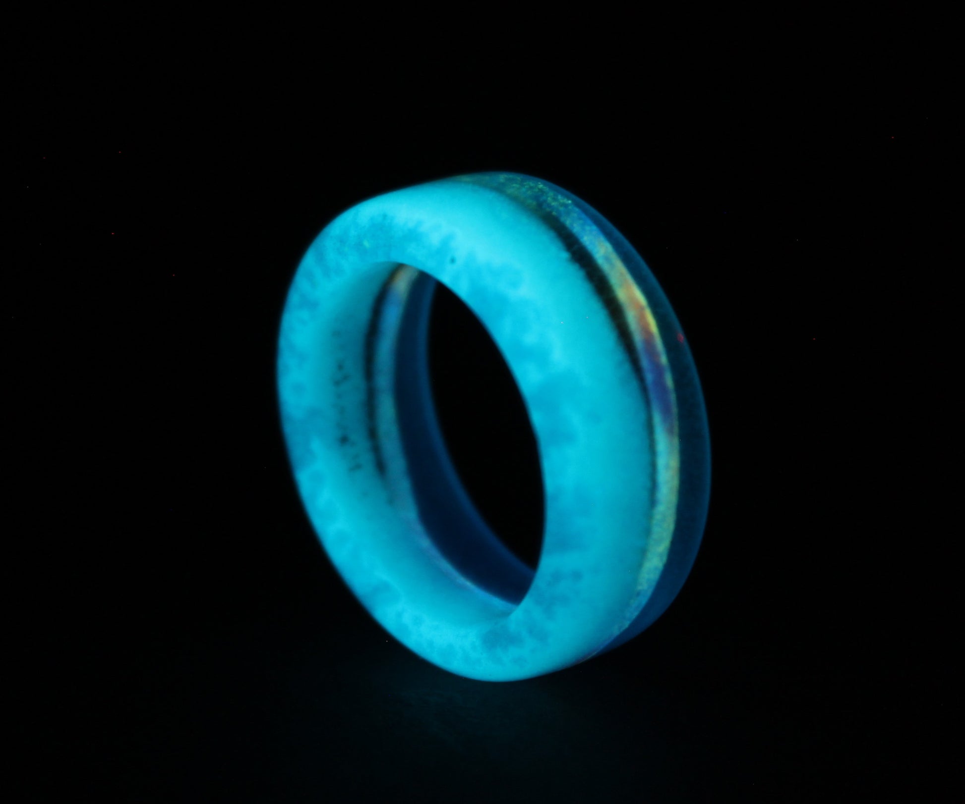 This listing is for a handmade ring made with casted epoxy, pigments and glow powder.