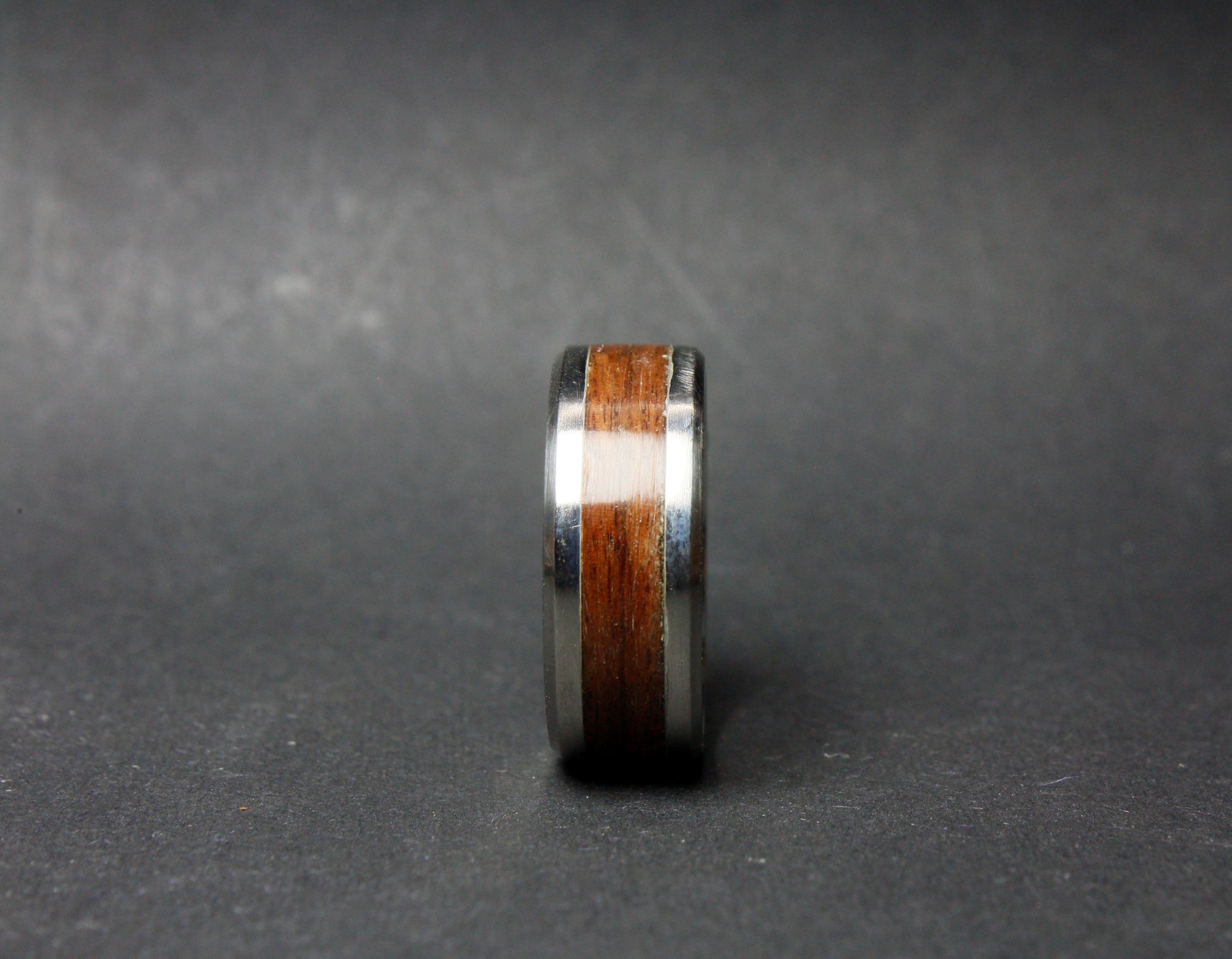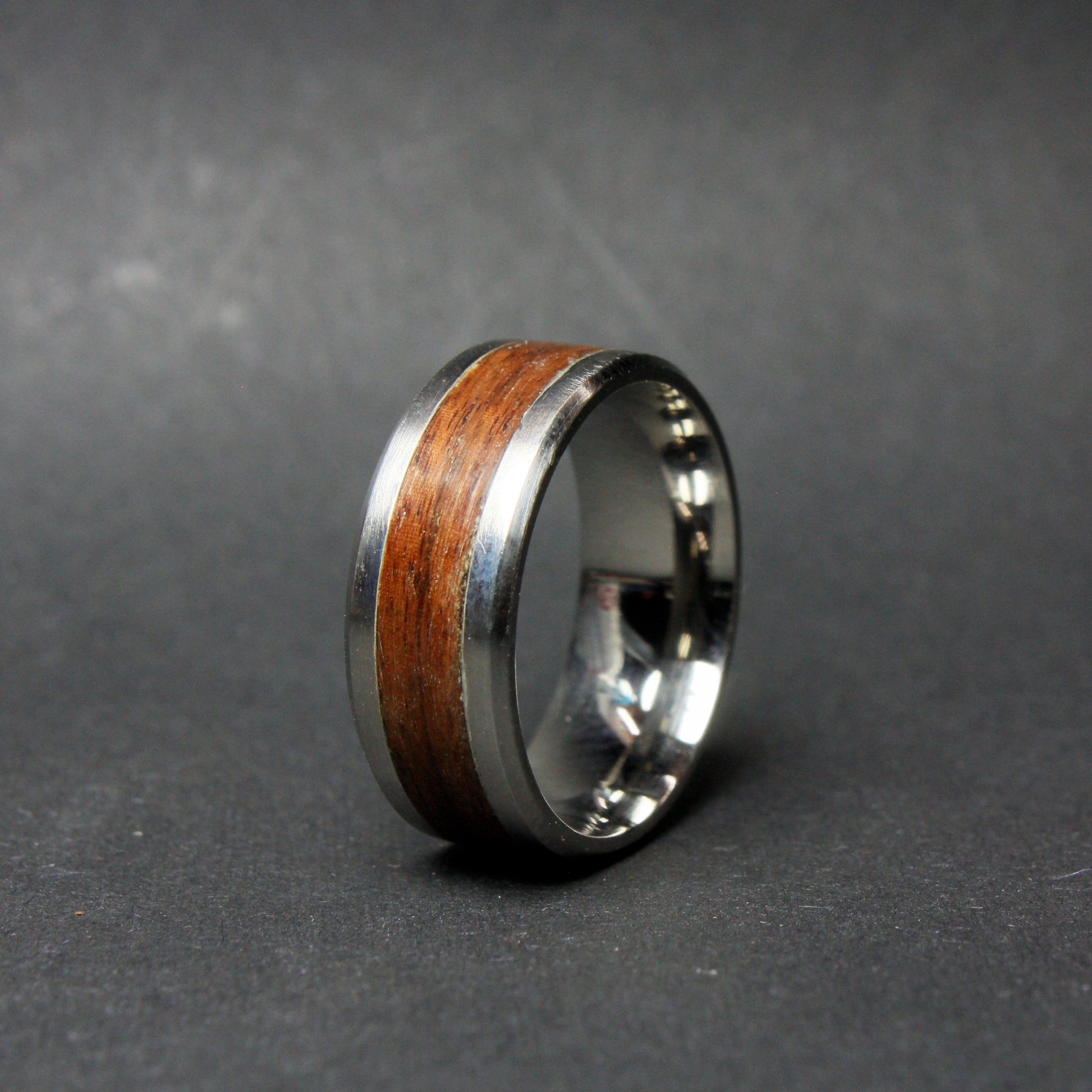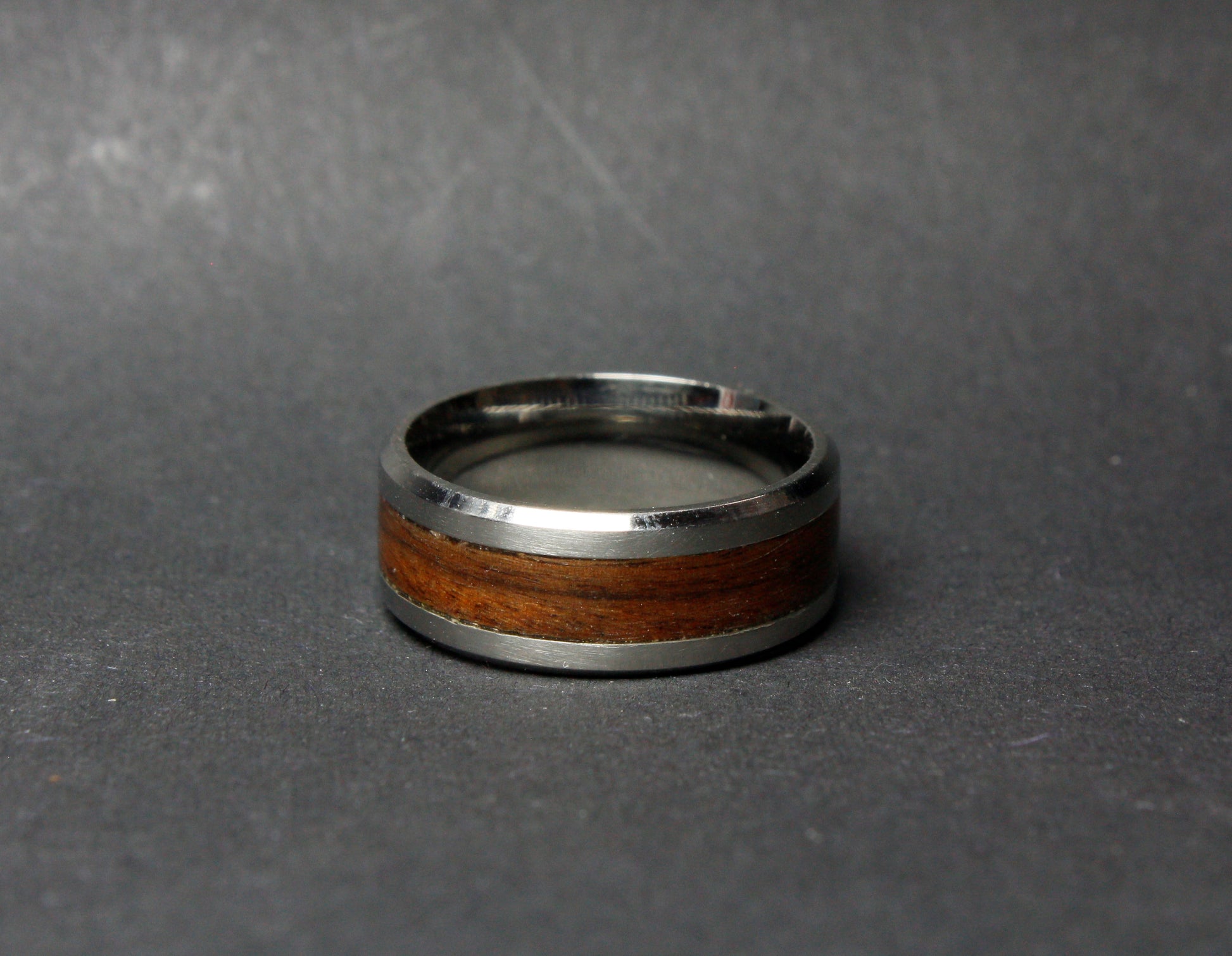 This listing is for a handmade ring made with titanium core and inlaid with Santos rosewood veneer.