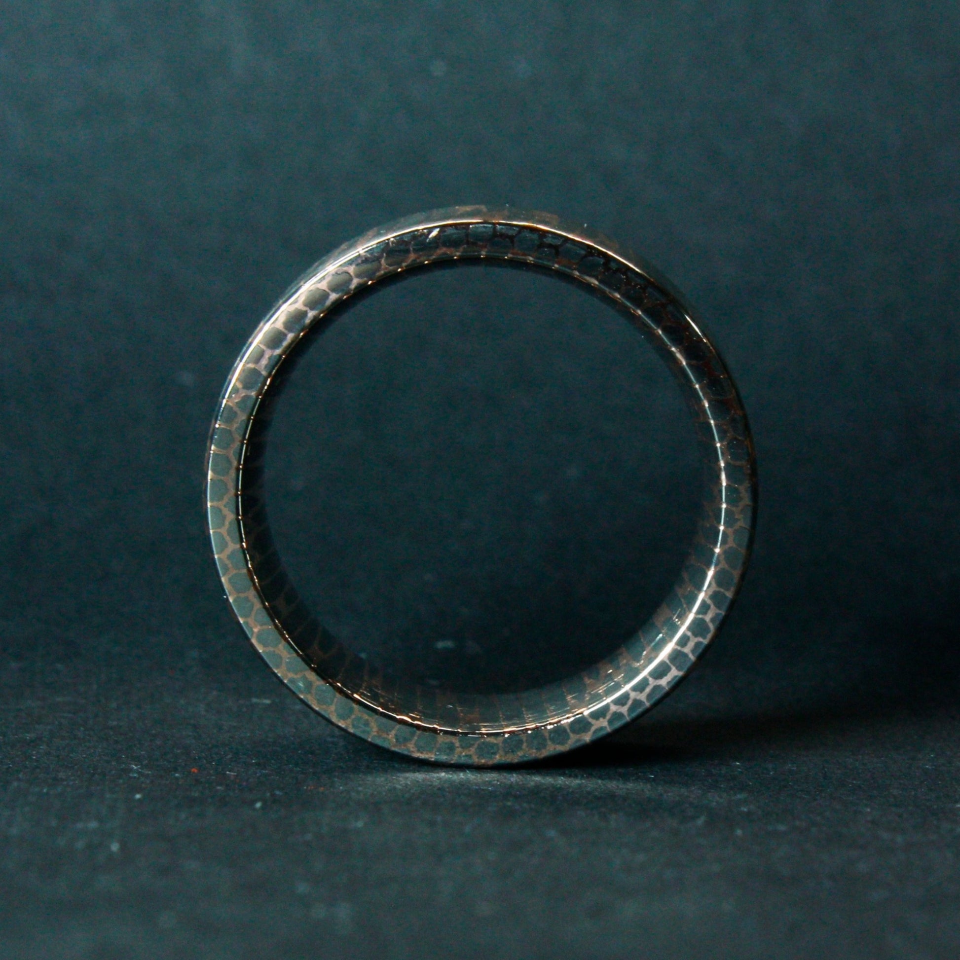 A superconductor is a general name for metals and alloys that when cooled, exhibit close to zero electrical resistance, and hence are often used in special scientific experiments. This ring is made of copper and titanium niobium alloy, creating an interesting pattern (for etched superconductor rings check my store).