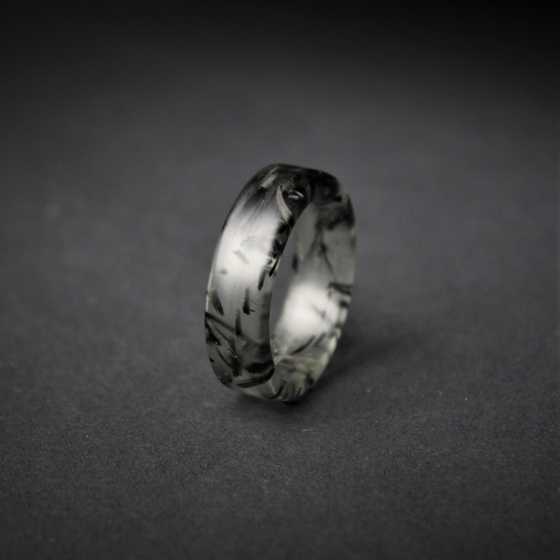 This listing is for a custom handmade ring made with shredded carbon fibers and epoxy.