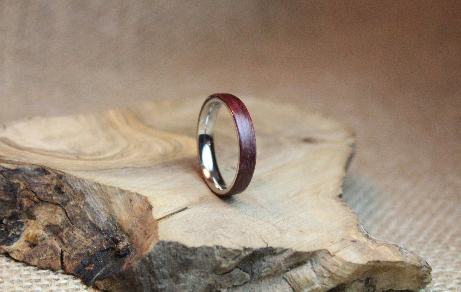 This listing is for a handmade purpleheart and stainless steel ring.