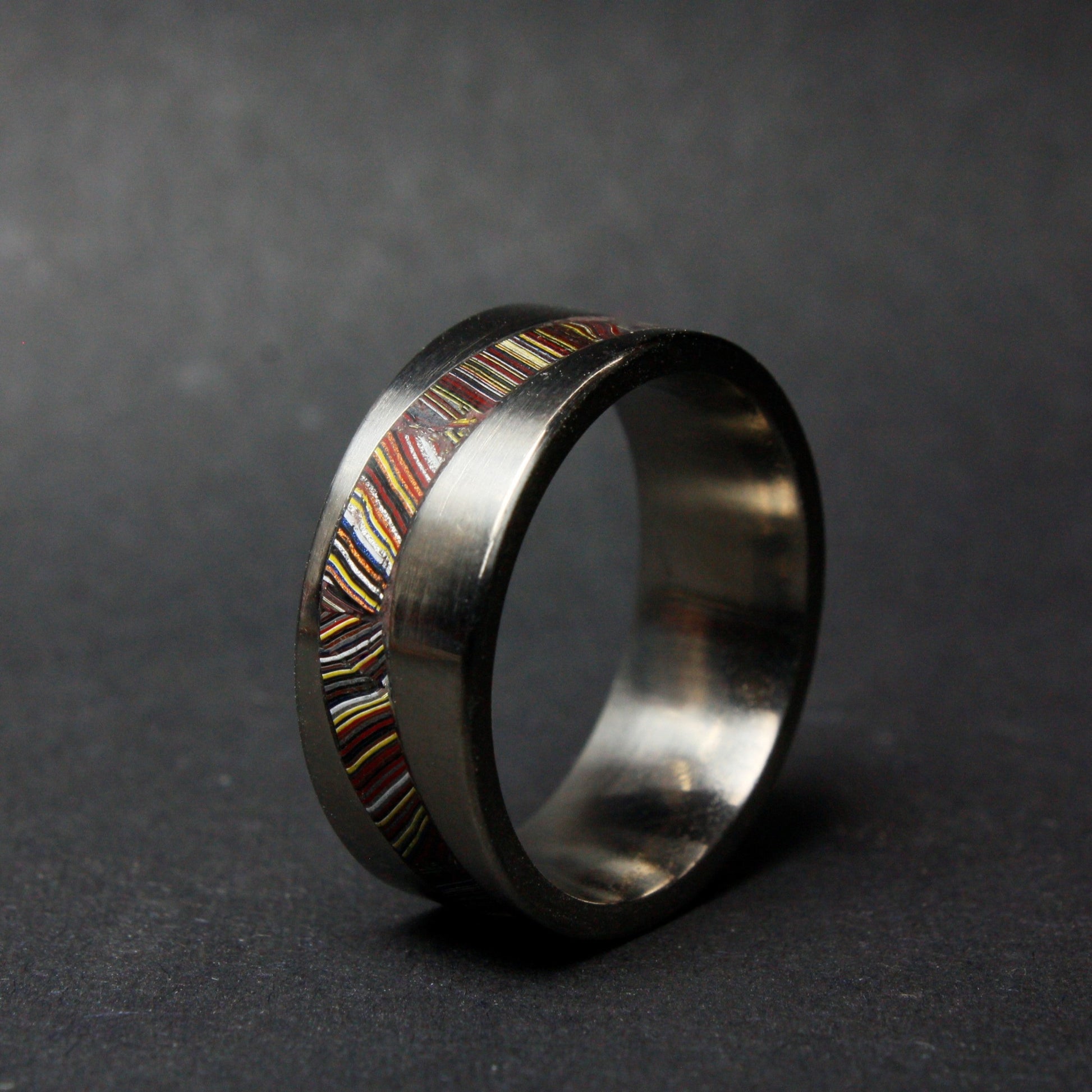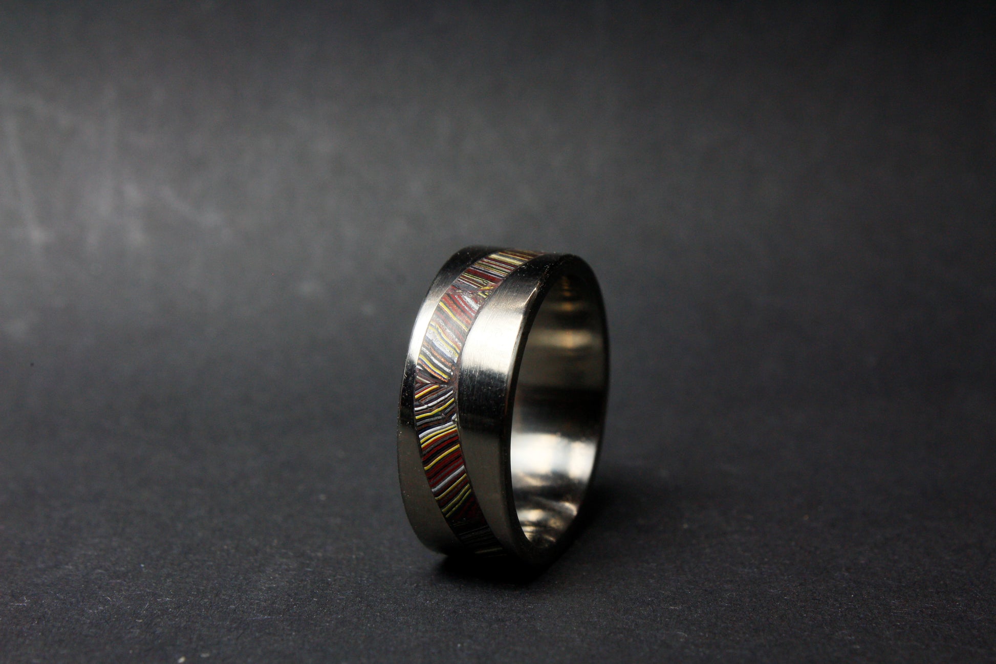This listing is for a handmade ring made with a titanium core and inlaid with corvette fordite.