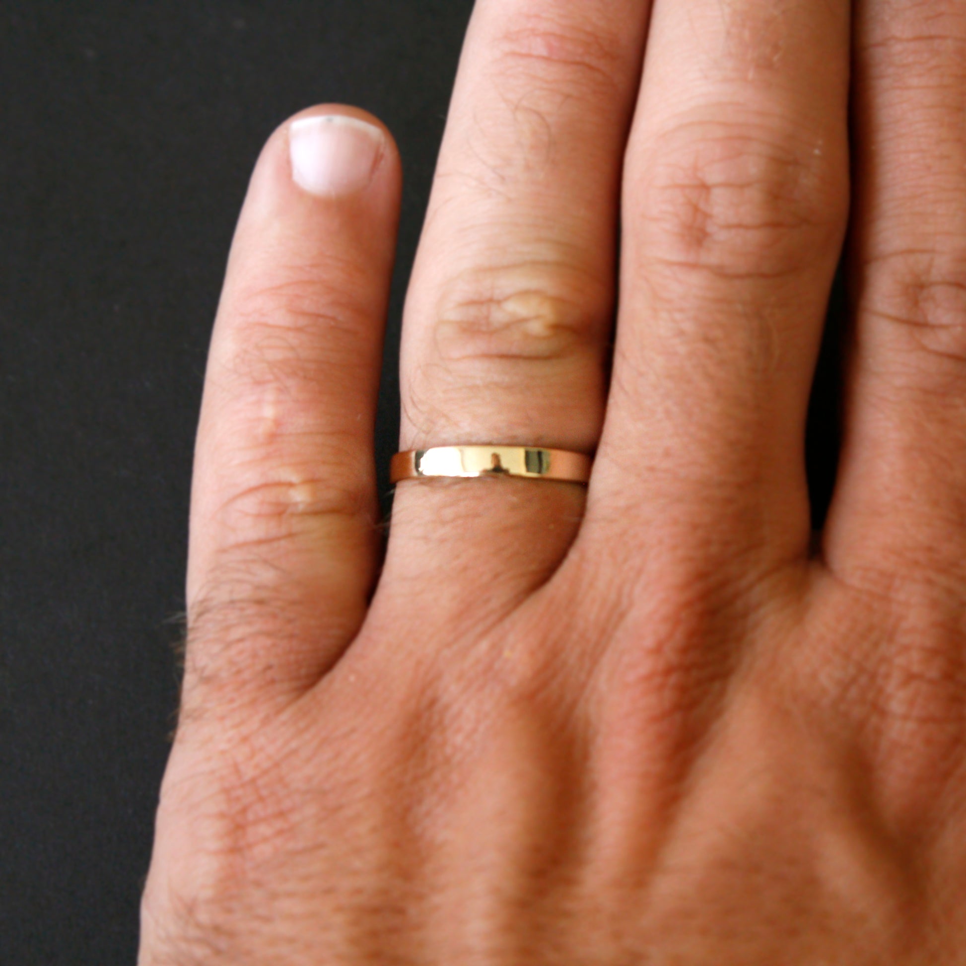 This is a classic and simple wedding band, the ring in the pictures is 3mm wide, this thin band is very subtle and is perfect for people not used to wearing rings.